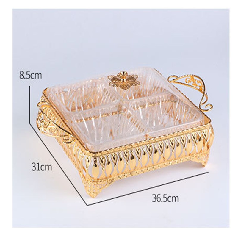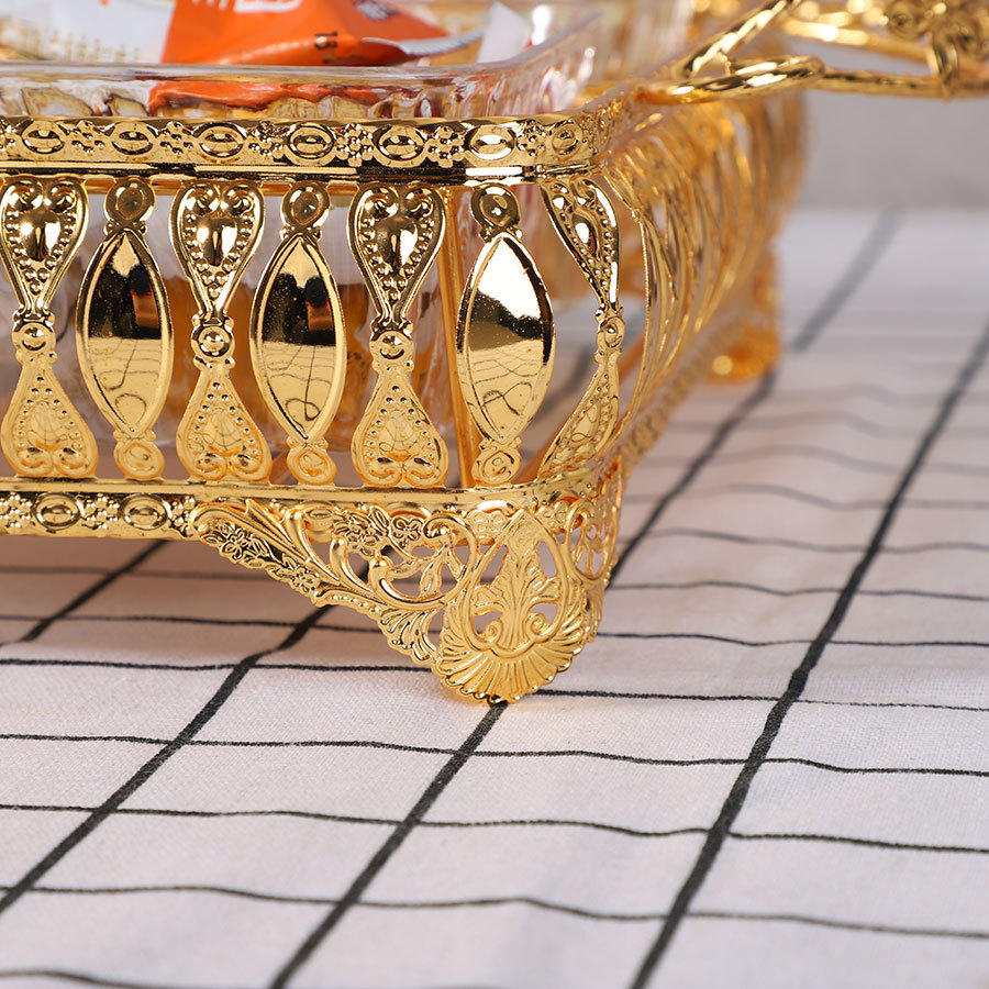 Ramadan decoration arabic decoration acrylic golden sugar basket fruit bowl snack candy plate with metal handle