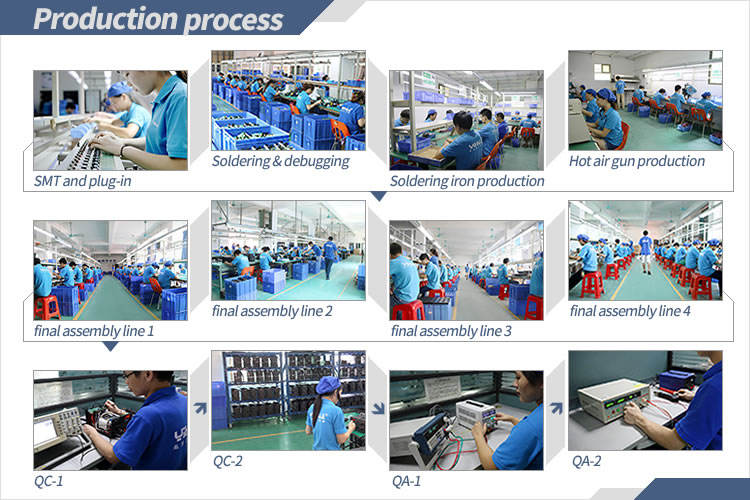 1. Using PID programmable temperature control technology, the highest precision PID program can be implanted, high-speed tracking and detection of the actual temperature of the desoldering gun and soldering iron, and real-time temperature correction. Magical temperature compensation speed minimizes temperature errors for temperature stability and compensation speed.