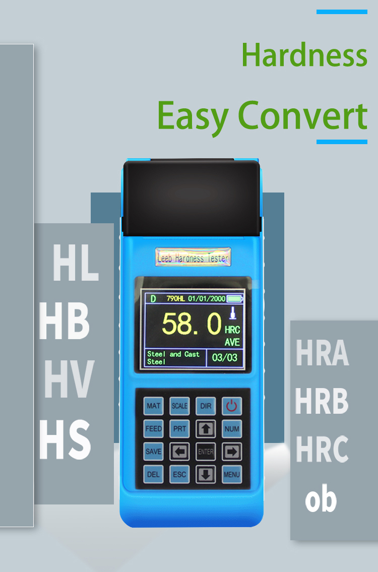 4. Wide measurement range. It can measure the hardness of all metallic materials. Directly display the hardness scale HRB, HRC, HRA, HV, HB, HS, HL and three strength values.