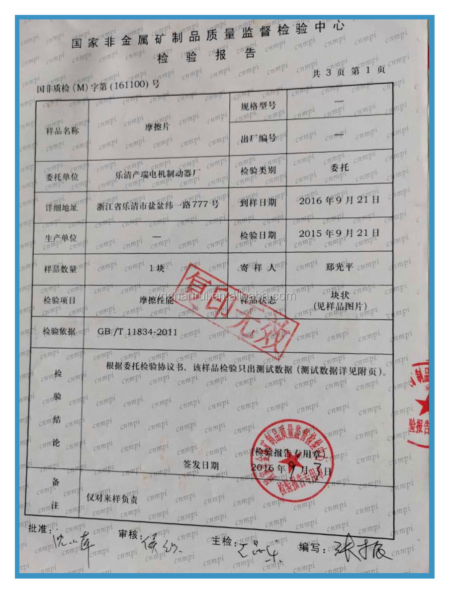 | Mechanical test report: | if | product name: | DZS hot selling electromagnetic brake |