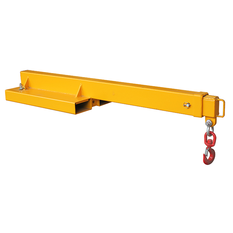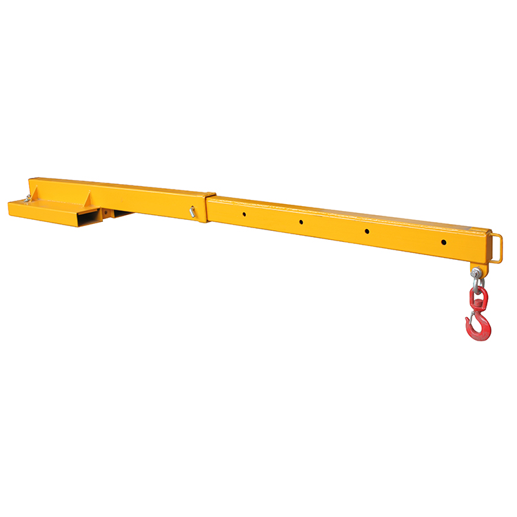 Fork pocket with harness attachment secures boom to forklift for safety performance
