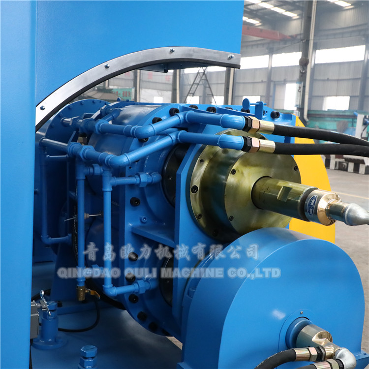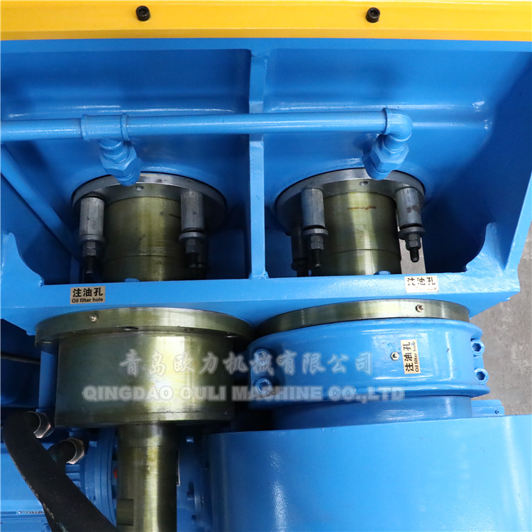 1.1 Pressing device: The pressing device is installed on the bracket and adopts a pneumatic top bolt. The working surface of the die and rubber material is plated with hard chrome; the inner cavity of the mass has heating and cooling channels, which can be heated or cooled according to the process requirements, and is equipped with a dust cover, which has a good sealing effect.