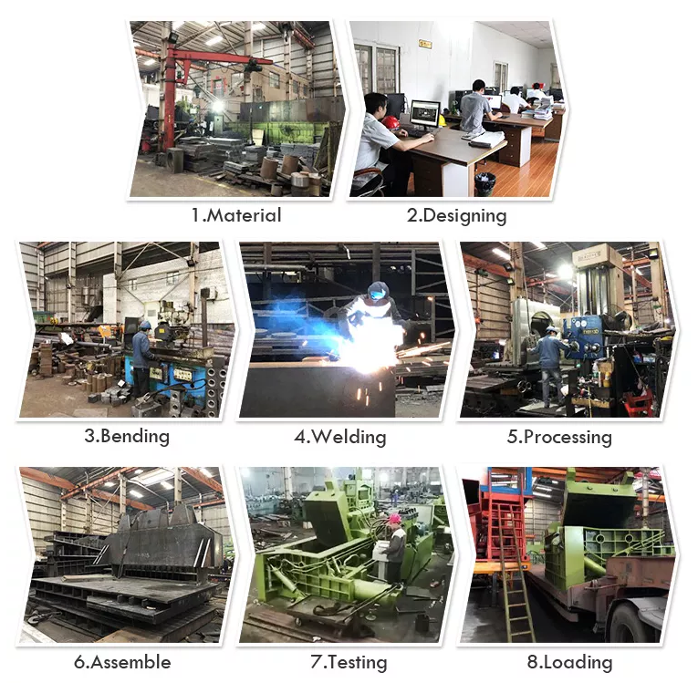 The hydraulic press can cold-press waste automatic casings, waste barrels, and waste copper and aluminum into rectangular blocks. The package is discharged from the front and subjected to a secondary compression.