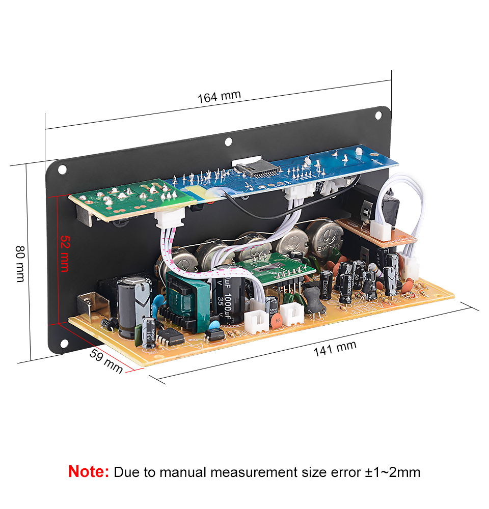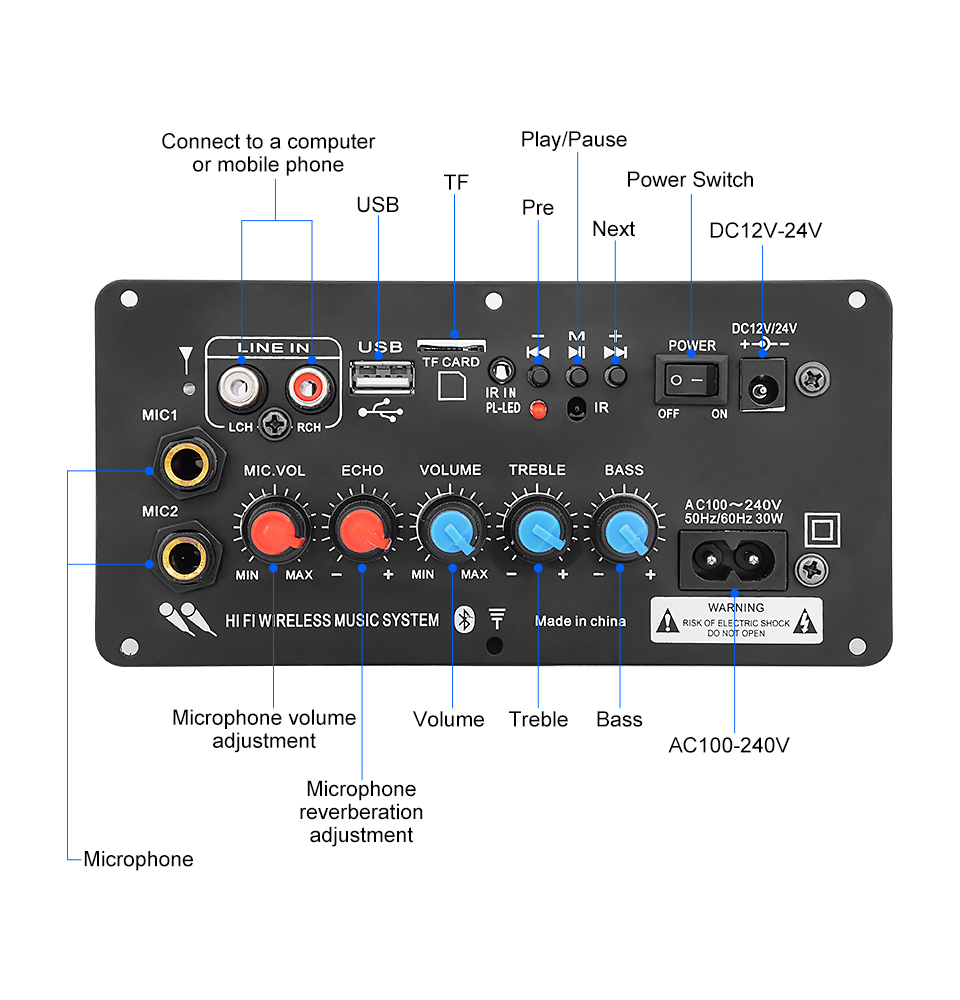Subwoofer digital power amplifier board dual microphone karaoke amplifier reverberation 12V 24V 220V suitable for 8-12 inch speakers