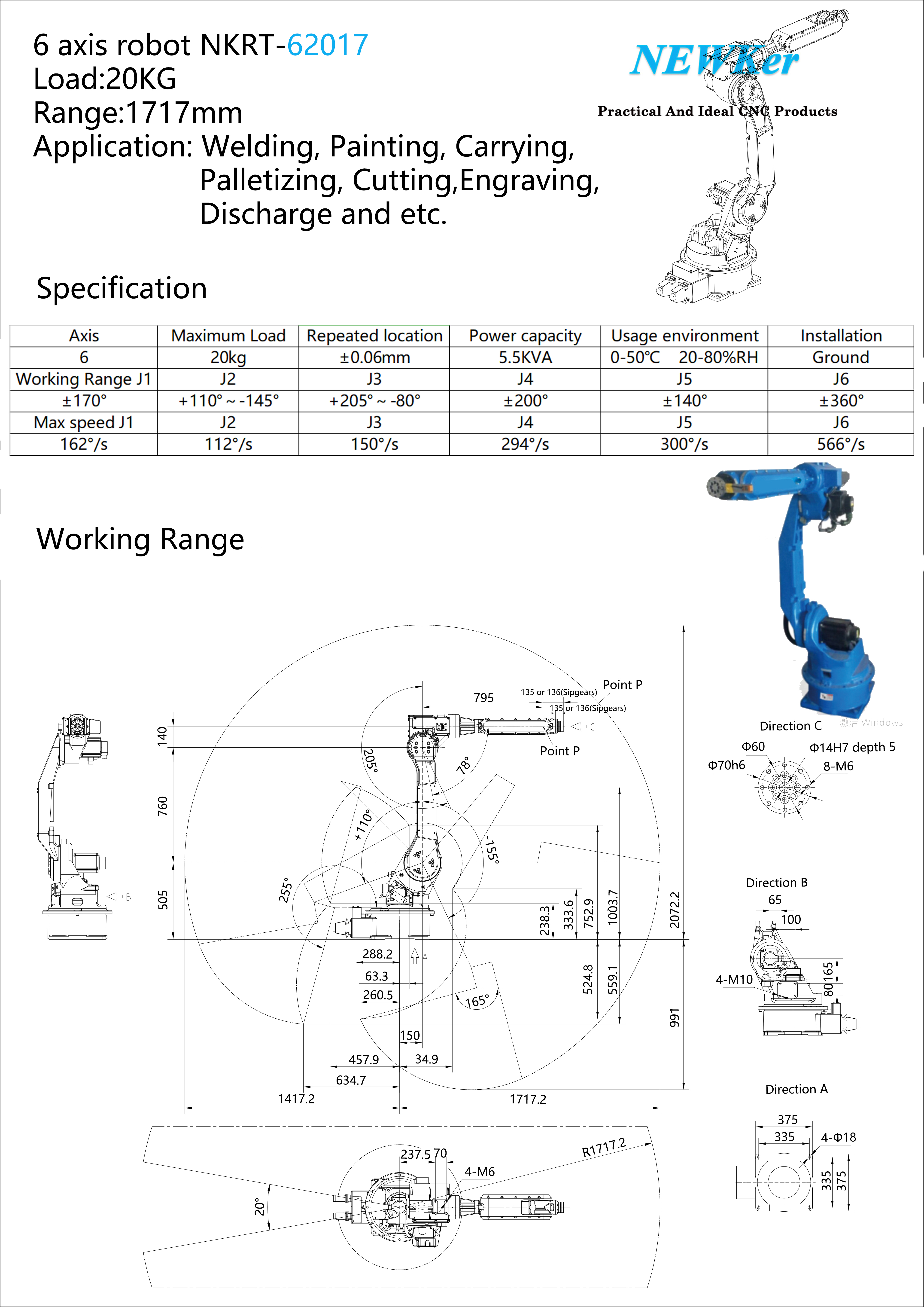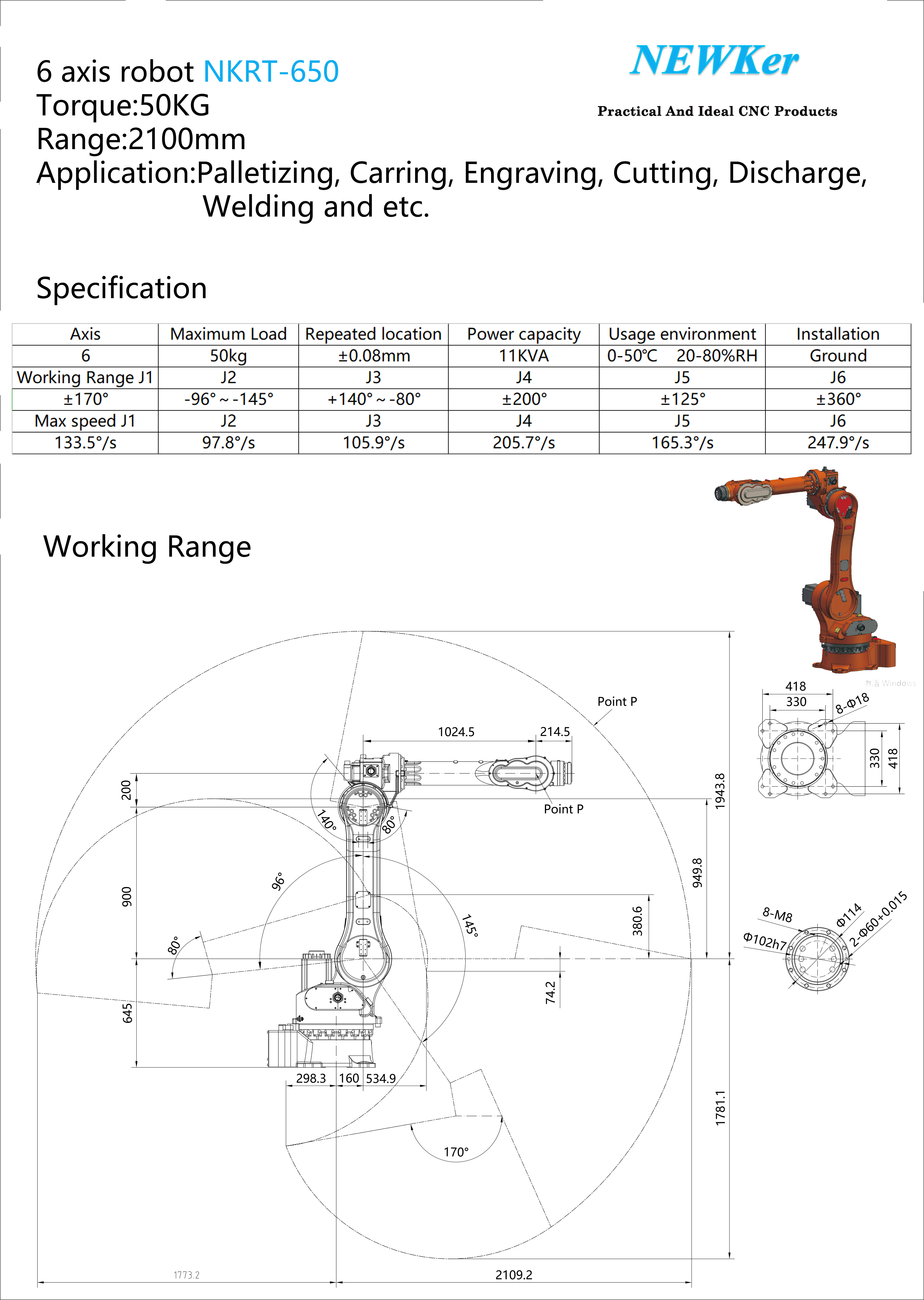 | User Storage: | 256Mb (extended to 2G) | application: | Machine tool loading and unloading, teaching, playing chess, welding, assembling, painting, cutting, polishing |
