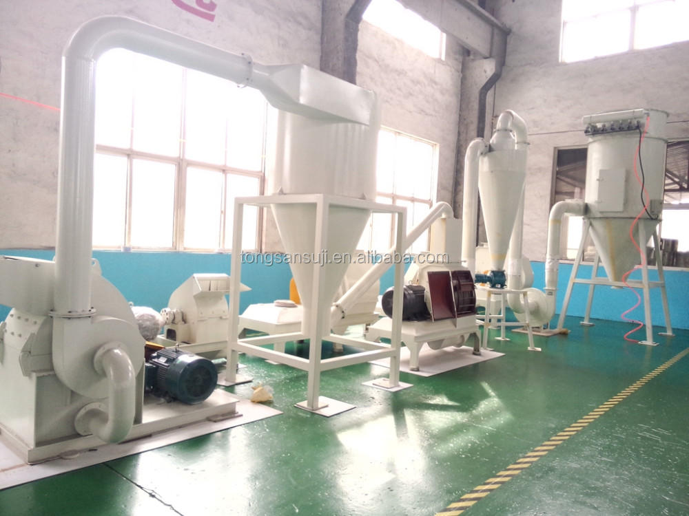 Wood powder material:80-100 mesh wood flour, can be made from wood sawdust, rice husk, straw, wheat husk and straw, cotton straw and agricultural waste. What the machine needs is a wood shredder and a shredder