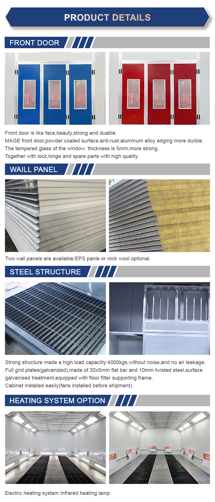 Standard Size Automotive Paint Booth Specifications | ||||||