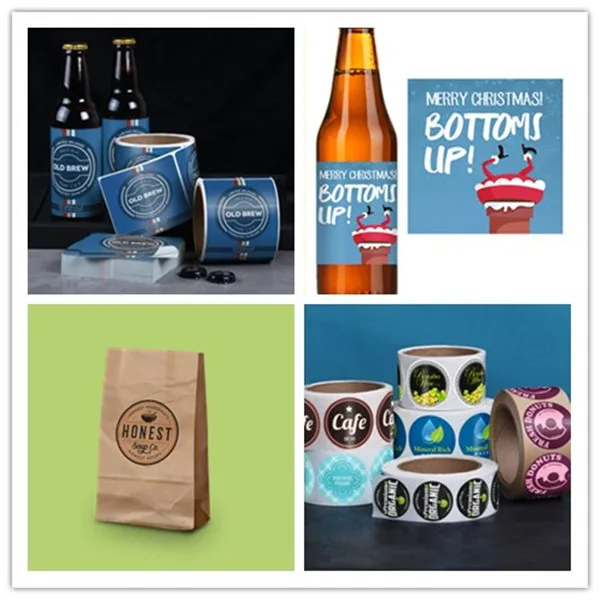 Food industry: large amount of coated paper stickers, labels in bottle, food packaging bag.