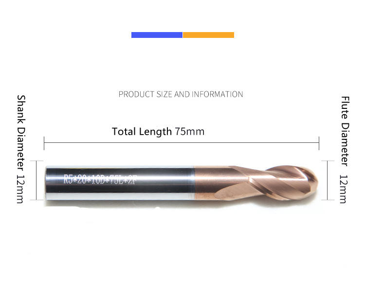 | application: | CNC machining | product name: | Solid Carbide 2-Flute HRC55 Ball End Mill |