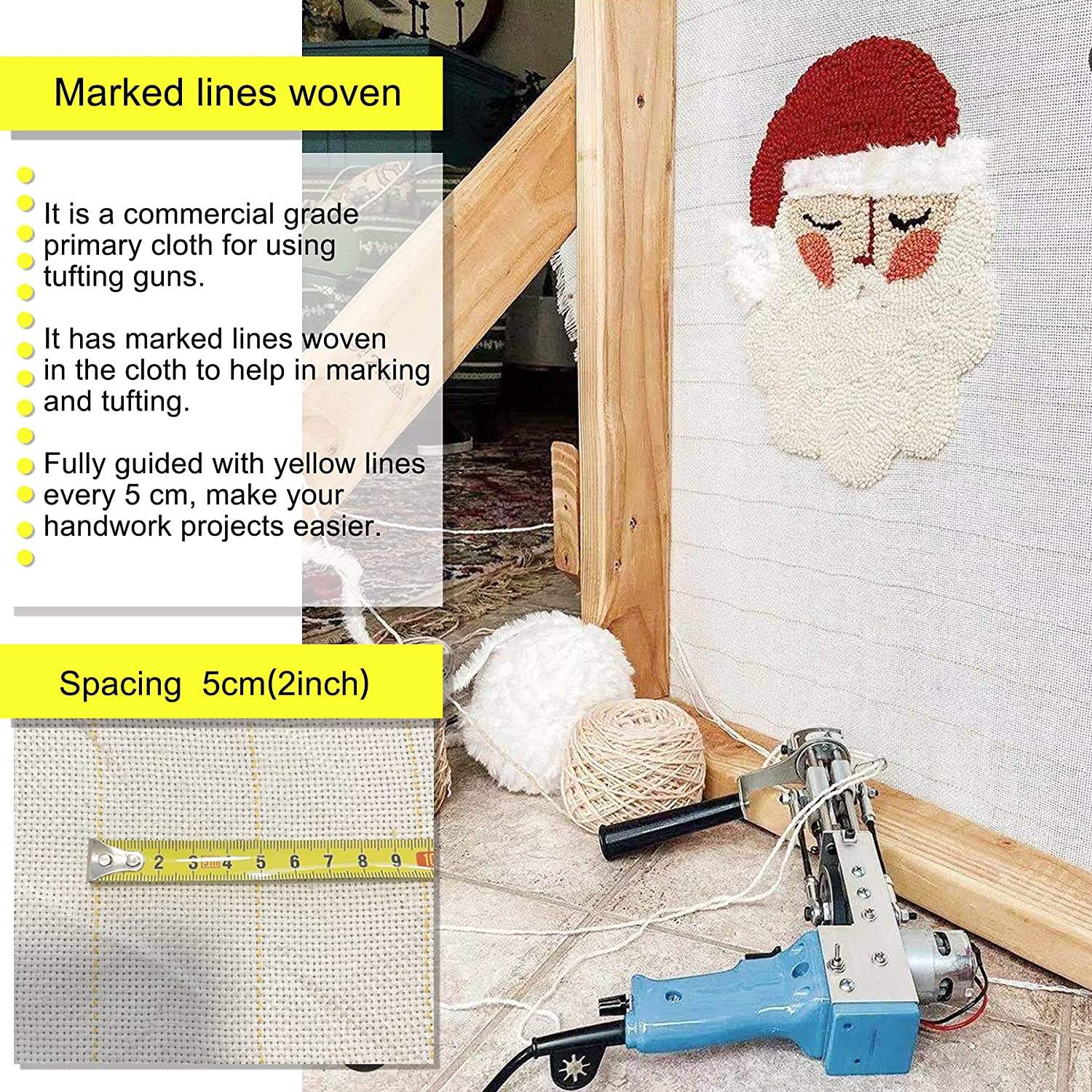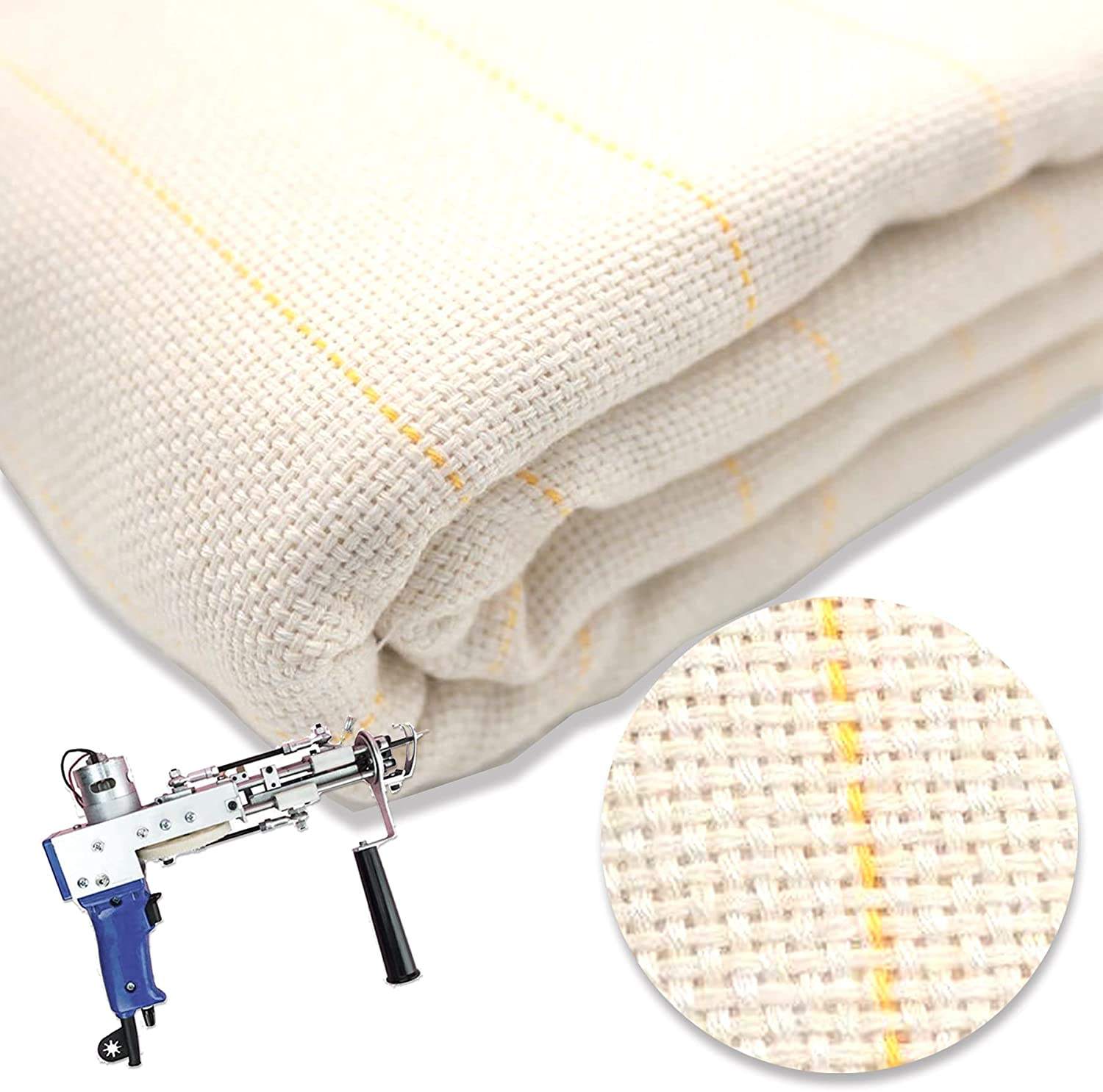 - Marker Thread: is a commercial grade primary cloth for tufting guns. It has marker threads woven into the cloth to aid in marking and tufting. Fully guide with yellow thread every 5cm to make your crafting projects easier. When the cloth is stretched, it is convenient to check whether the cloth is stretched evenly. The tighter the fabric, the more evenly the tufted carpet will be.