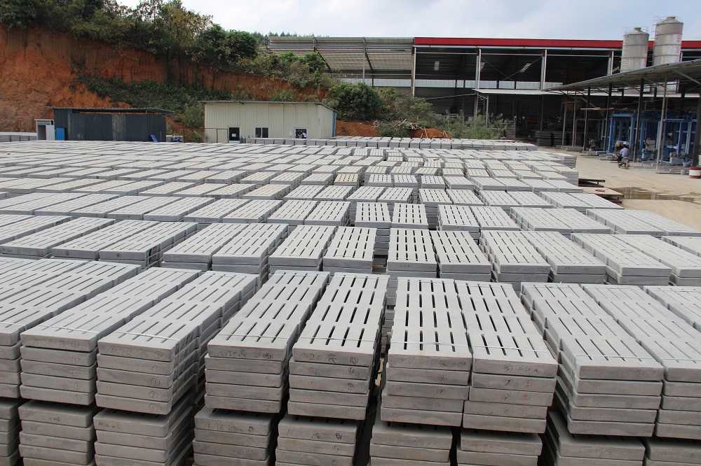 Automatic operation of the whole process: automatic concrete batching, automatic mixing, automatic feeding, forming, demoulding. A single line of 50 to 150 pieces can be produced in an 8-hour shift. The capacity depends on the size of the slatted board.