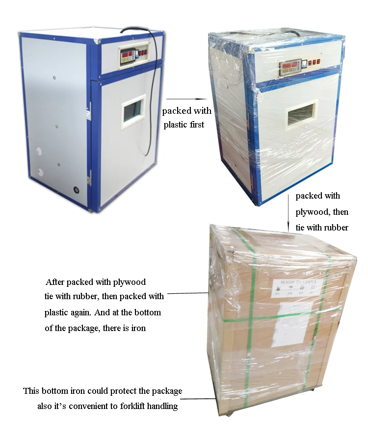 2.The steel bar, color plate and wall of egg incubator will be cut into different size for different capacity egg incubator.