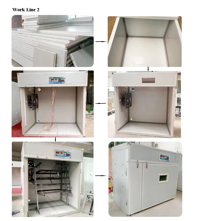 3.In this workshop, it is mainly responsible for assembly body of egg incubator with wall and color plate and angle of aluminum alloy and etc.