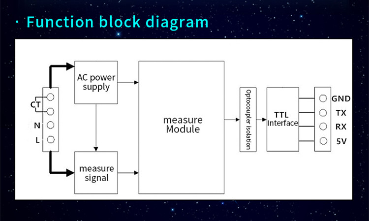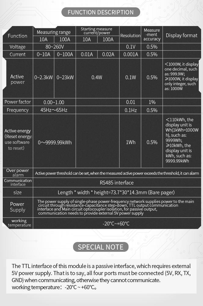 This module is mainly used to measure AC voltage, current, active power, frequency, power
