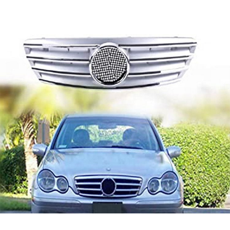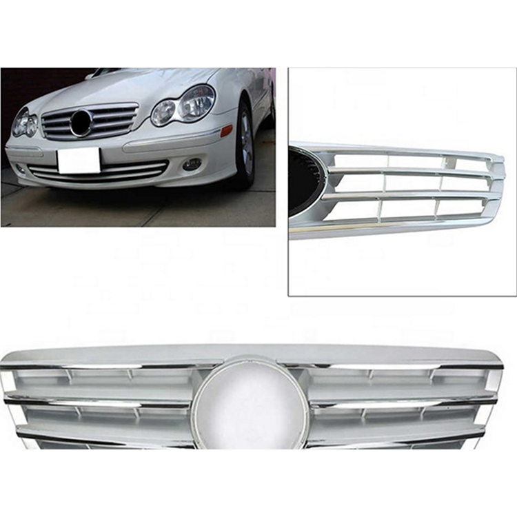Suitable for Mercedes-Benz C-Class W203 front bumper grille silver-plated sports models 2000-2006