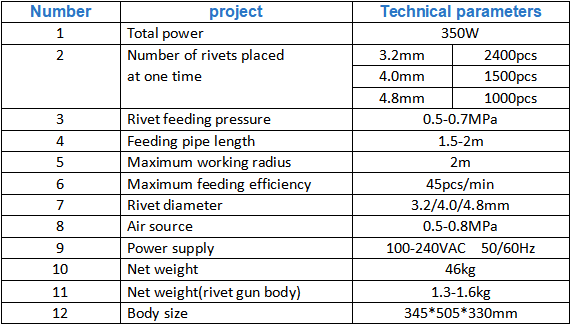 5. With automatic feeding, rivet shortage reminder, no rivet warning function.