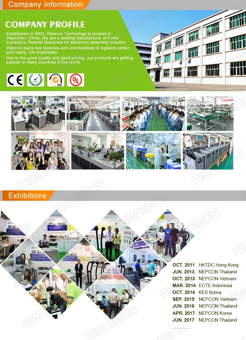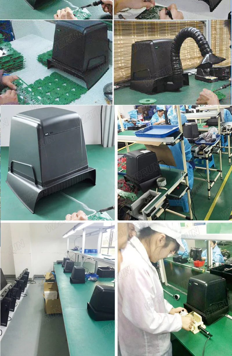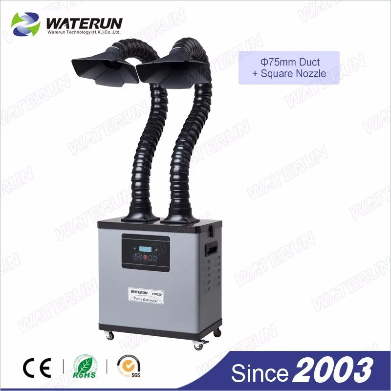 Waterun soldering and welding fume extractor is for cleaning of both particles and gases. It is designed to filter the harmfu substances, such as hydrocarbon and cyanide, during the process of soldering, tin dipping in the solder pot, laser marking and carving, printing, etc. It catches harmful smoke with freestanding ducts and adjustabl air volume to significantly improve your working environment.