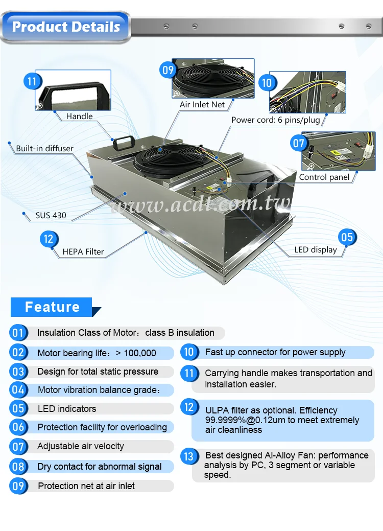 | Place of Origin: | Taiwan; | Name-2: | Stainless Steel Thin FFU Filter FFU; |