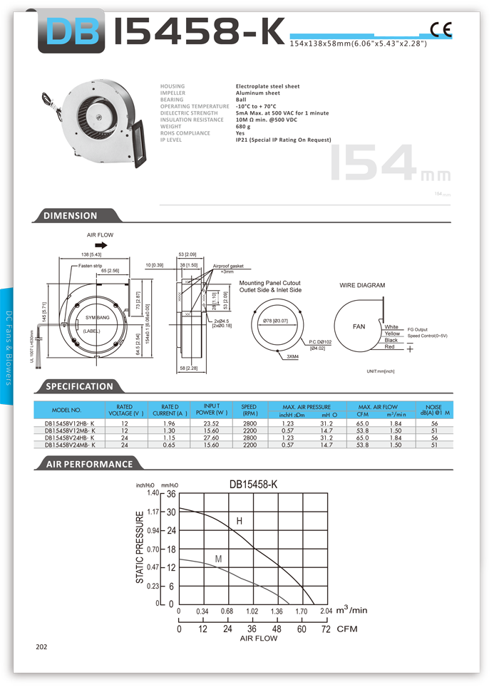 154X138X58mm 12V 24V blower snail (DB15458-K)