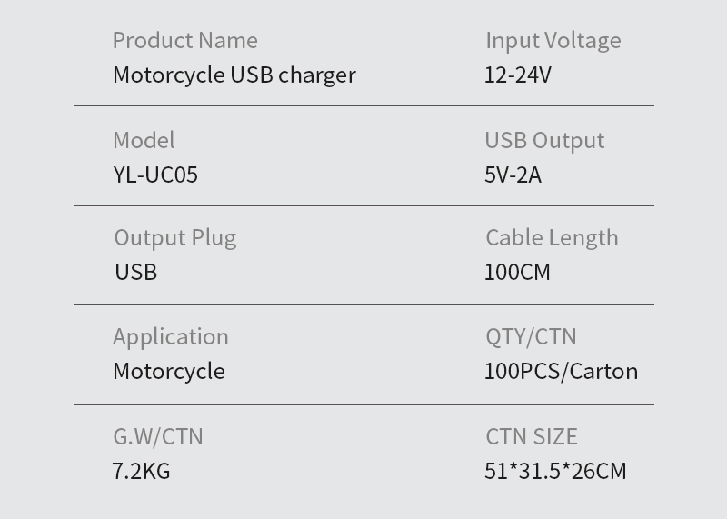 | Product Description | Motorcycle USB 5V 2A Mobile Phone Charger |