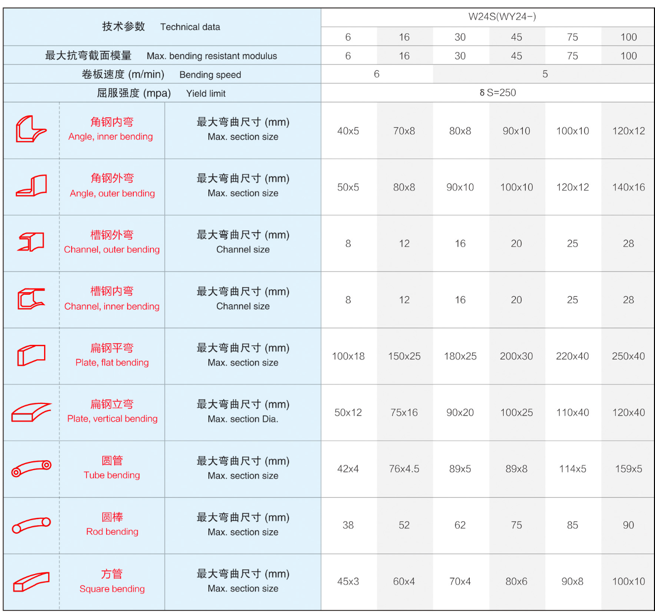 | Model: | W24S Hydraulic Profile Bending Machine | Material yield limit (Mpa): | 245 |