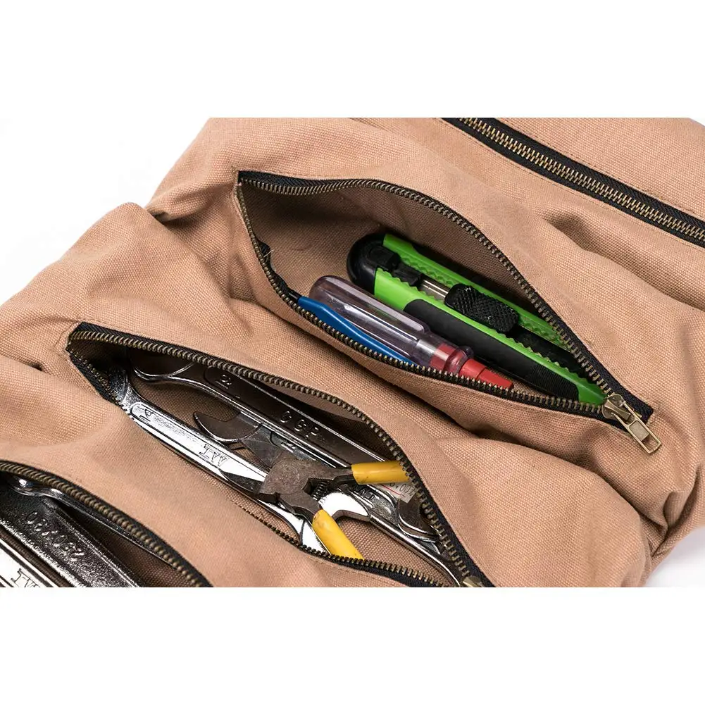 Large Super Wax Canvas Wrench Roll Tool Organizer Bucket