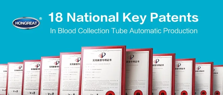 Since 2003, HONGREAT designed the FIRST set blood collection tube automatic production machine successfully. Through 15 years practical application production, and constant feedback from customers, HONGREAT is making continuous efforts on innovation, maintaining its leadership in technology and market, becoming the preferred partner and equipment supplier of lots of public companies and large-scale production enterprises.