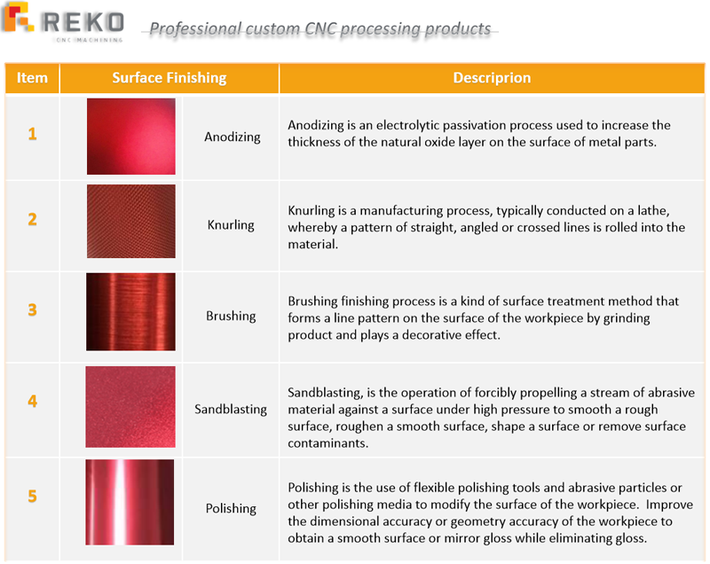 | surface treatment | Sandblasting, polishing, anodizing, zinc/nickel/chromium/plating, powder coating, passivation, heat treatment, etc. | |