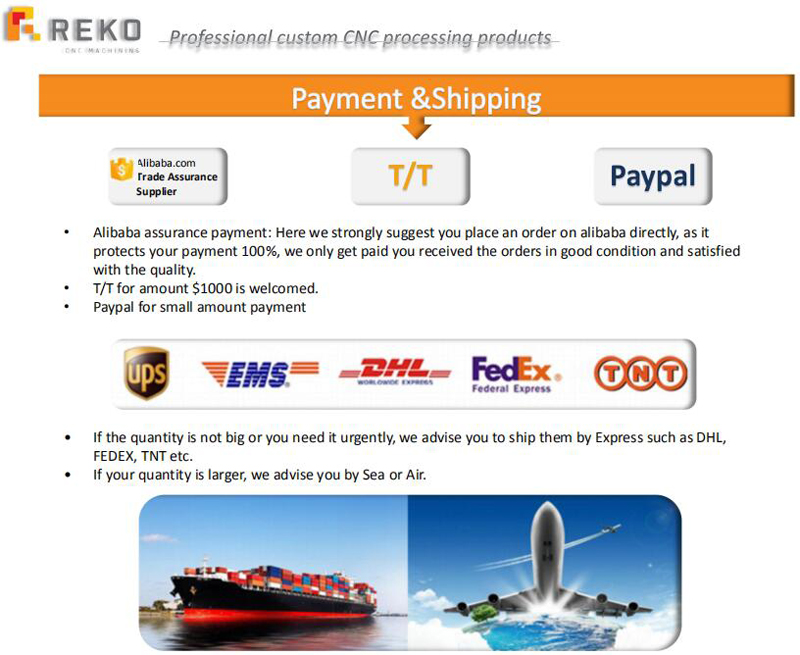 | surface treatment | sandblasting, polishing, anodizing, zinc/nickel/chromium/plating, Powder coating, passivation, heat treatment, etc. |