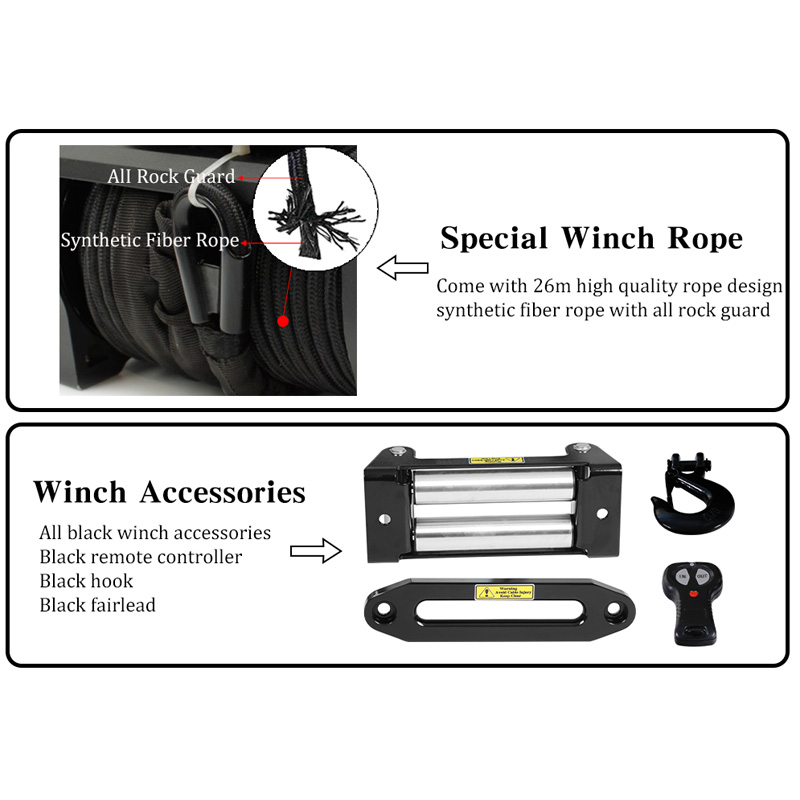 | color: | carbon black | Packaging Details: | ENJOIN CARBON SERIES 12V SYNTHETIC ROPE ELECTRIC WINCH 12000lb load capacity for off road cartons or crates |
