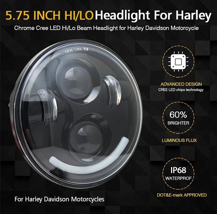 | Packaging Detail: | Shock Proof Pack: Kraft Paper+ plastic bag+foam+carton box Motorcycle Headlight Emark Auto Lighting System 5.75Inch Headlight; |