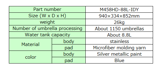 ■ Features● M458HD-88L-IDY adopts super-absorbent fiber microfiber forming yarn, which can quickly remove raindrops on the umbrella, and has strong water absorption and transpiration ability. It can absorb about 1150 raindrops per unit and can hold about 8.8L of water.
