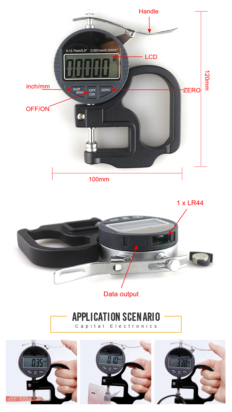 | brand: | OEM | product name: | 0.001mm Resolution Digital Plastic Film Thickness Gauge |