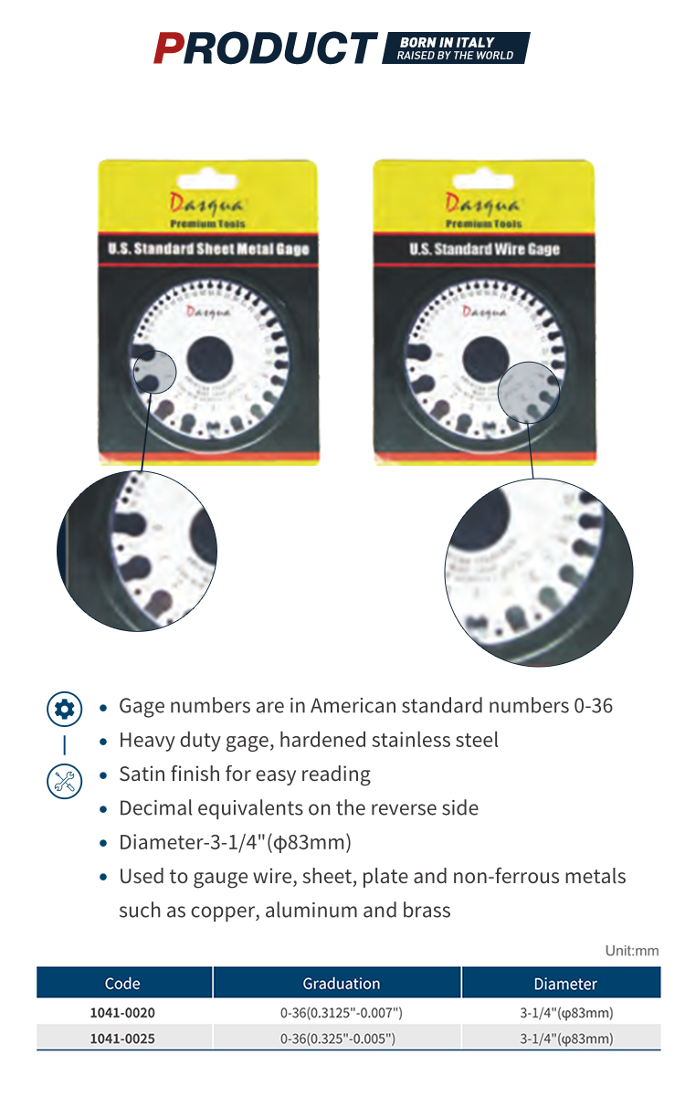 Dasqua 0-36mm Stainless Steel Wire and Sheet Metal Gauges