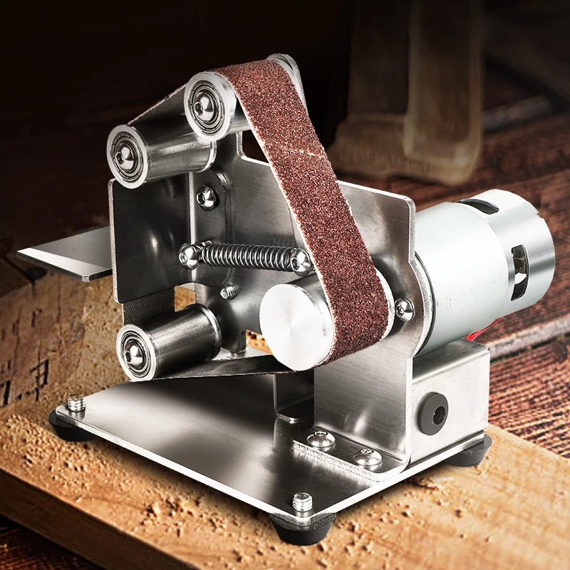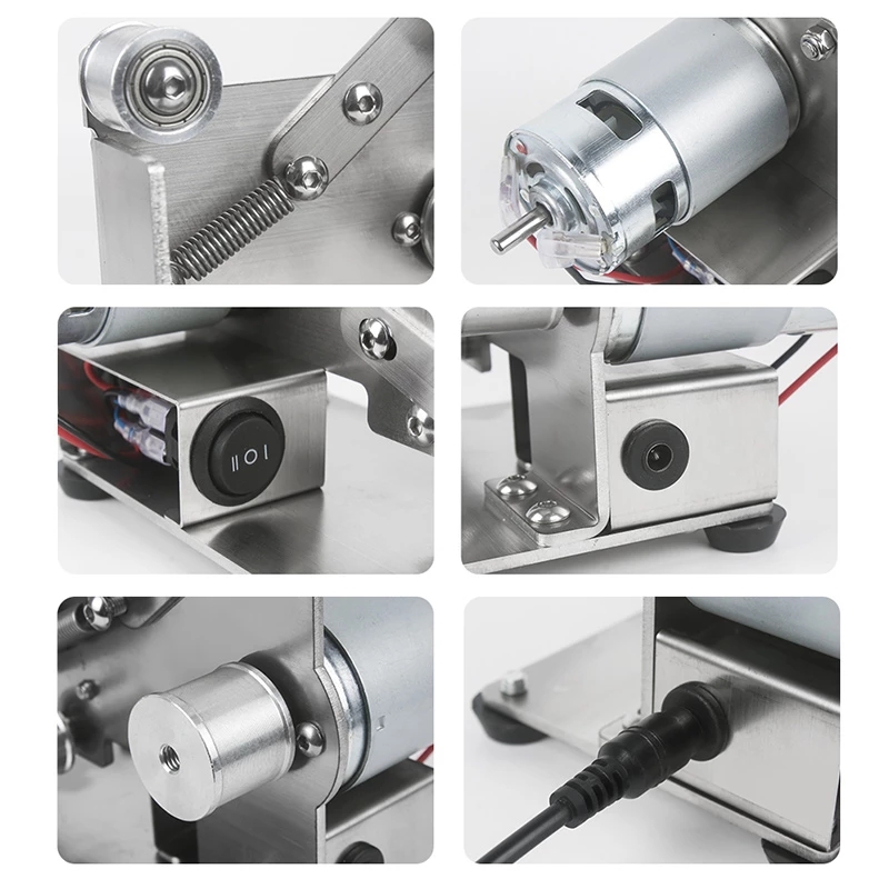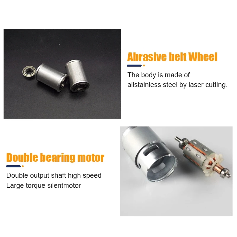 The abrasive belt wheel has built-in double bearings, anti-skid design, and runs smoothly.