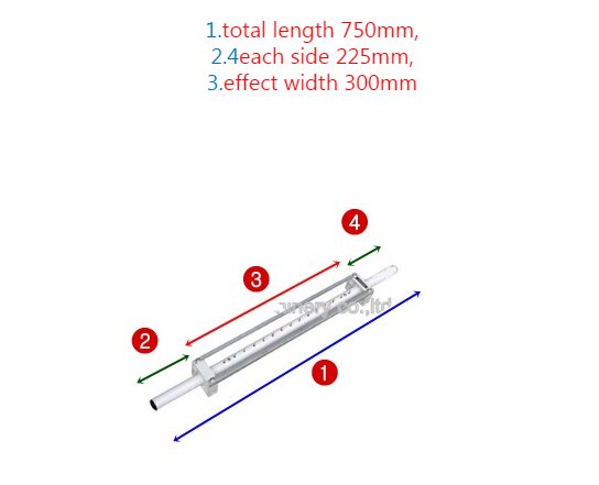 Electrostatic bar bag making machine accessories with a total length of 750mm, 225mm on each side, and a width of 300mm