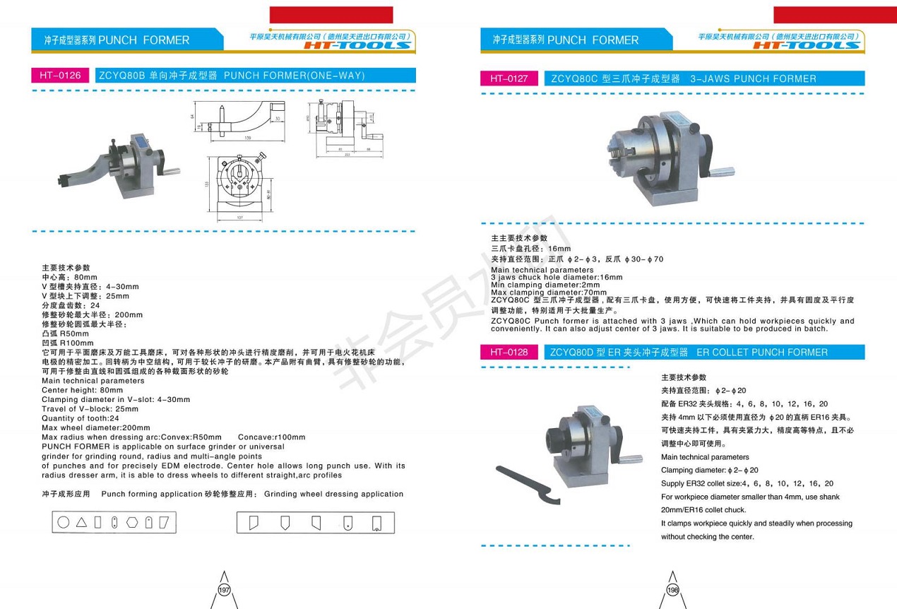 The punch forming machine is suitable for surface grinder or universal grinder, grinding the round point, radius and multi-angle point of the punch, and for precision EDM electrode. Its radius dressing arm can dress the grinding wheel into different straight and circular contours.