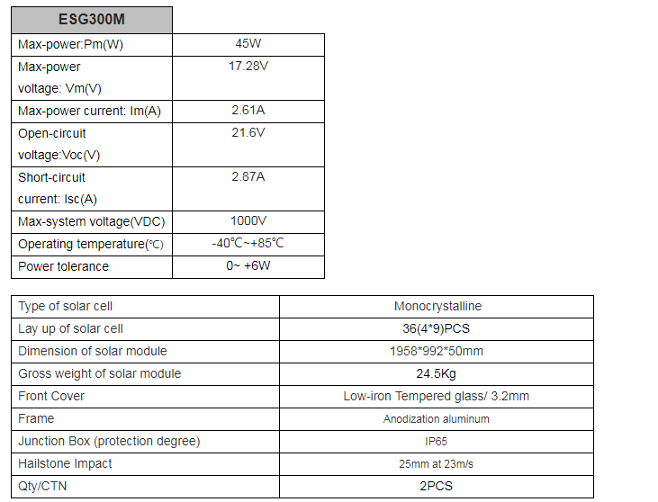 | Battery: | Gel battery | Solar panels: | mononucleosis |