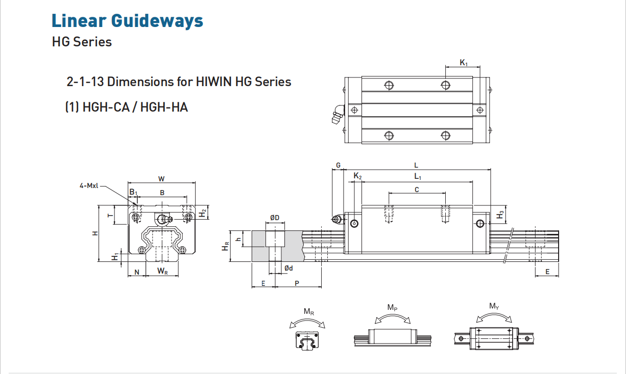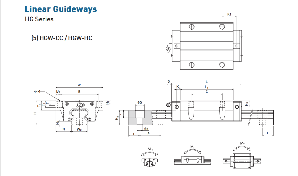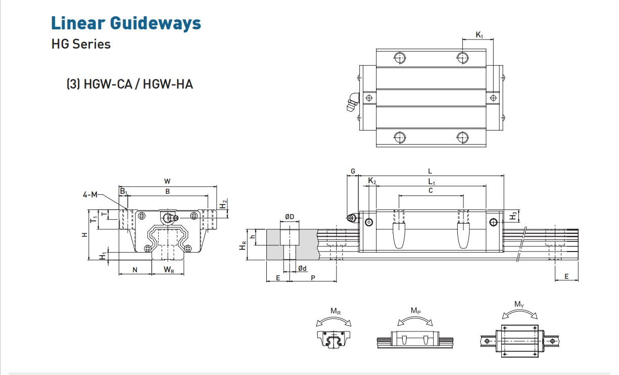 HG series linear guides are designed with circular arc grooves and structure optimization, and their bearing capacity and rigidity are higher than other similar products. It has the same load ratings in radial, reverse radial, and lateral directions, and features self-alignment to absorb installation errors. Therefore, HG series linear guides can achieve long life, high speed, high precision and smooth linear motion.