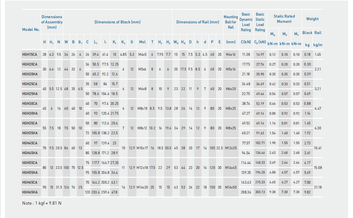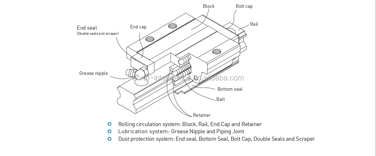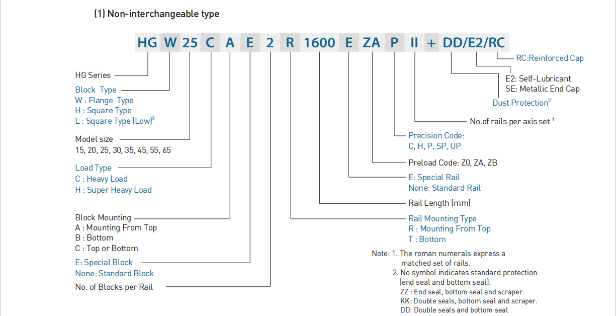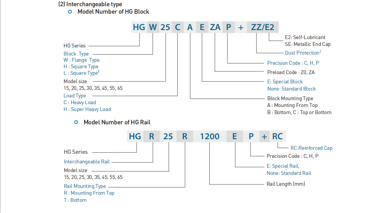 Due to precise dimensional control, the dimensional tolerances of the HG series can be kept within a reasonable range, which means that any block and any rail of a specific series can be used together while maintaining the dimensional tolerance. And a retainer was added to prevent the balls from falling out when removing the block from the track.