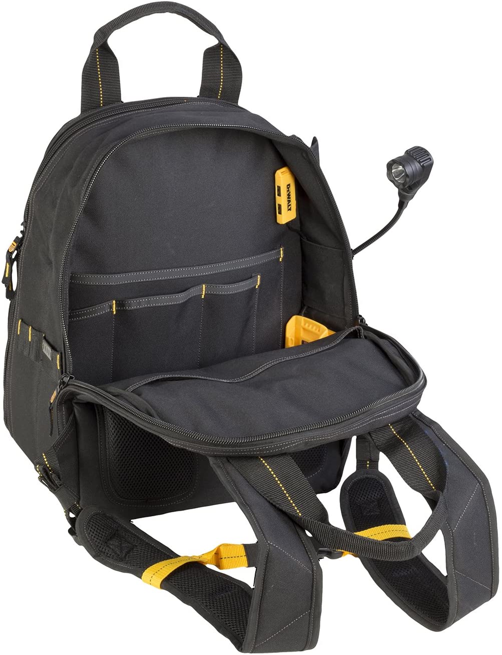 LIGHT USB CHARGING TOOL BACKPACK: This tool backpack is equipped with LED lights for low light working conditions. The backpack also has a USB that can charge two devices using a lithium iron battery (not included) up to 20V.