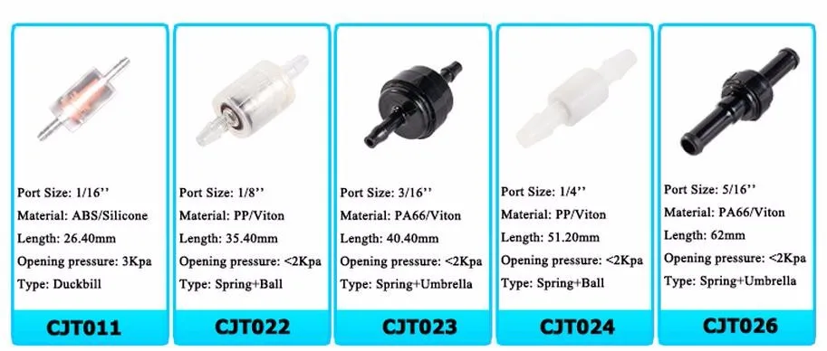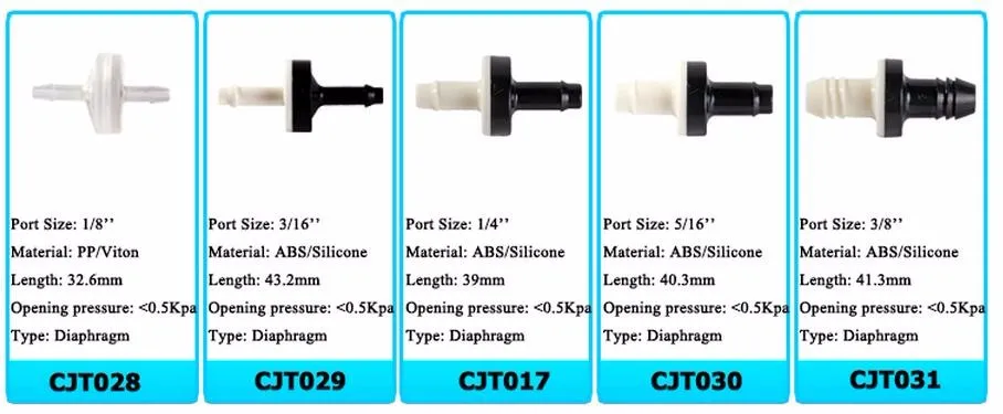 | Product name: | 5/16" plastic body silicone membrane non return valve; | Media: | Gas ,water , oil; |
