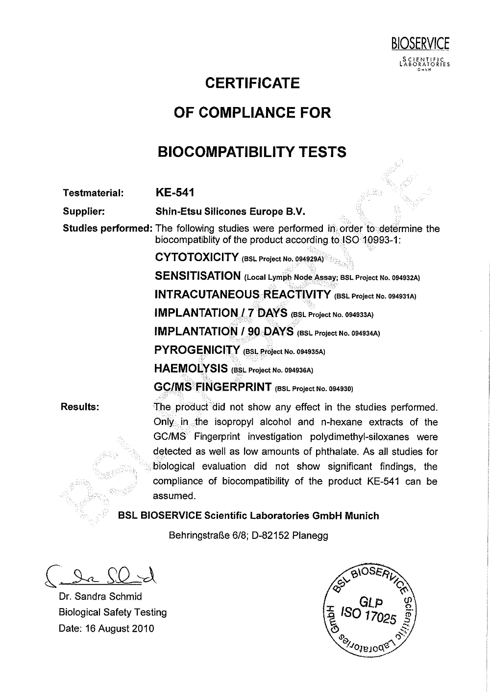 ISO 9001:2015 RoHS PAHS BIOCOMPATIBILITY