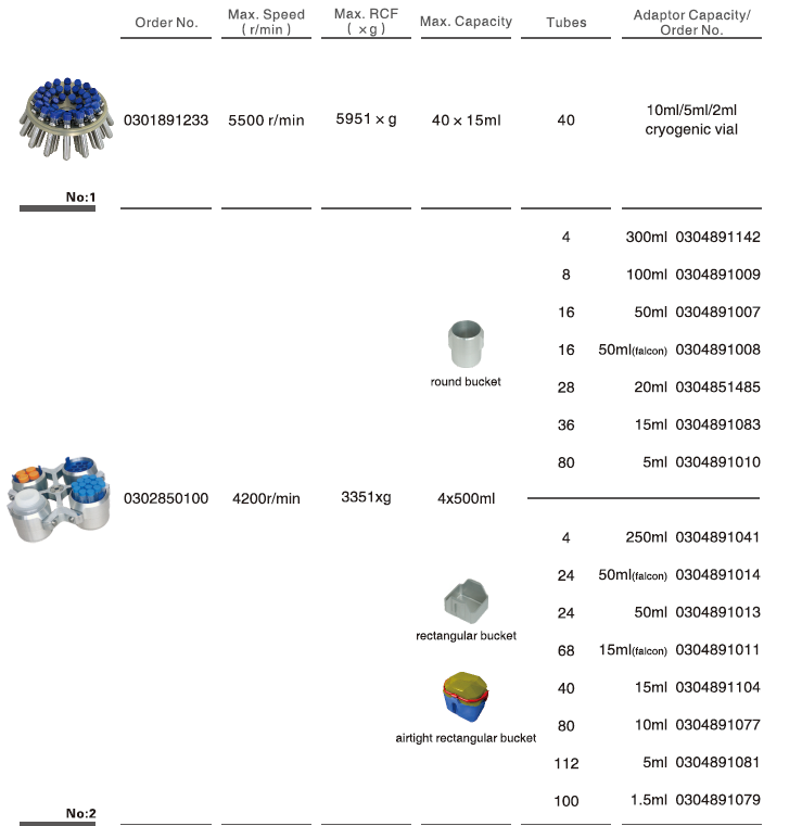 | Noise level: | <65dB(A) | Max RCF: | 5951xg |