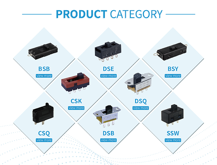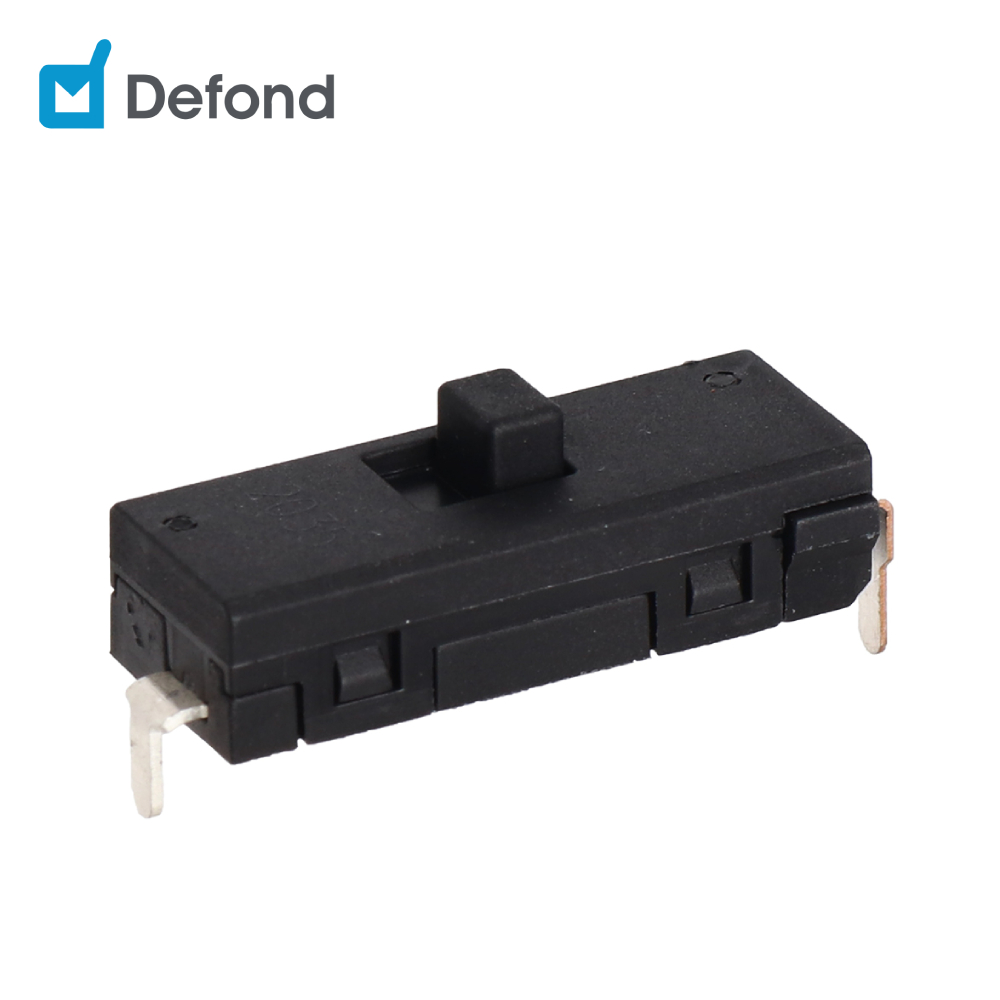 Slide switches are turned on/off by moving the slider from one position to another or multiple positions. Defeng slide switches are available in three main contact types and in plastic and metal housing options in all configurations of single pole single throw (SPST), single pole double throw (SPDT), double pole single throw (DPST) and double pole double throw (Double Pole, Double Throw).