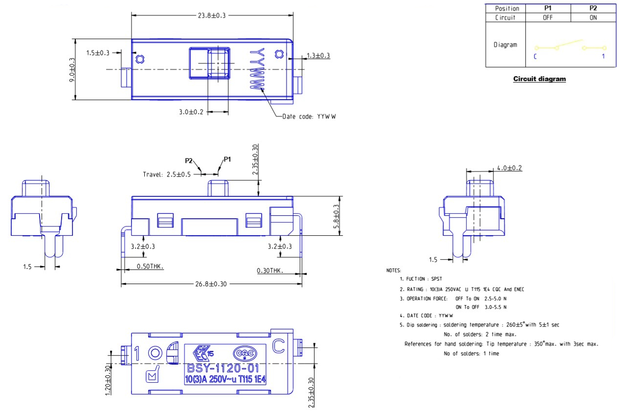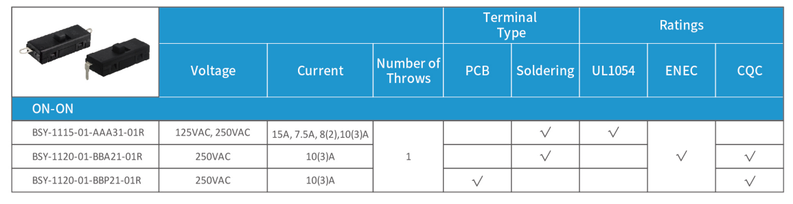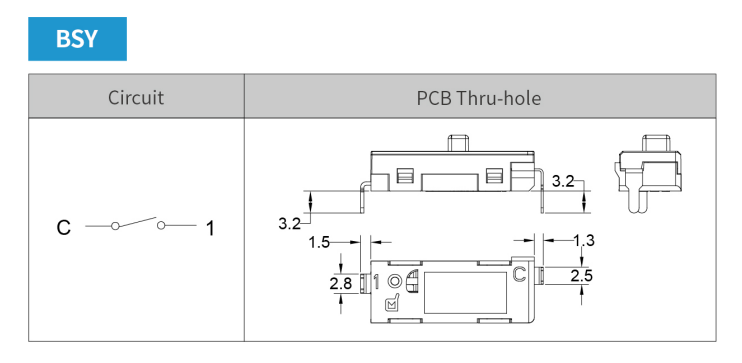 Single-pole single-throw micro slide switch Defond BSY-1120-01-BBP21-01R