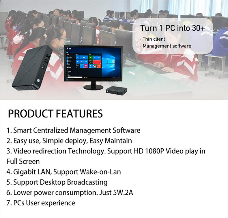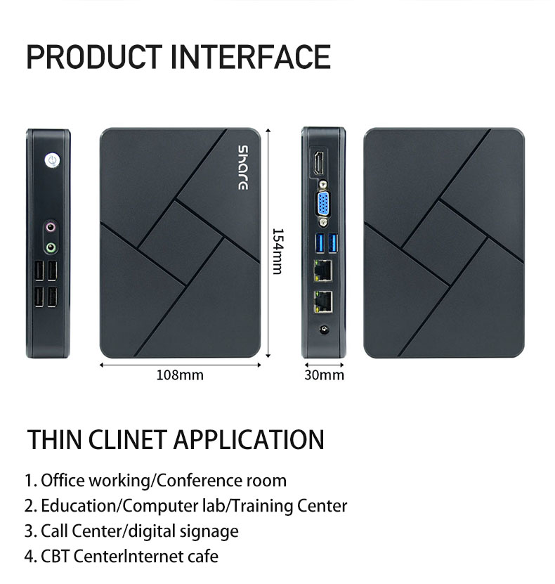 *Thin clients are generally suitable for computer labs/smart classrooms/libraries/offices/real estate/call centers/training centers...not suitable for home PCs.