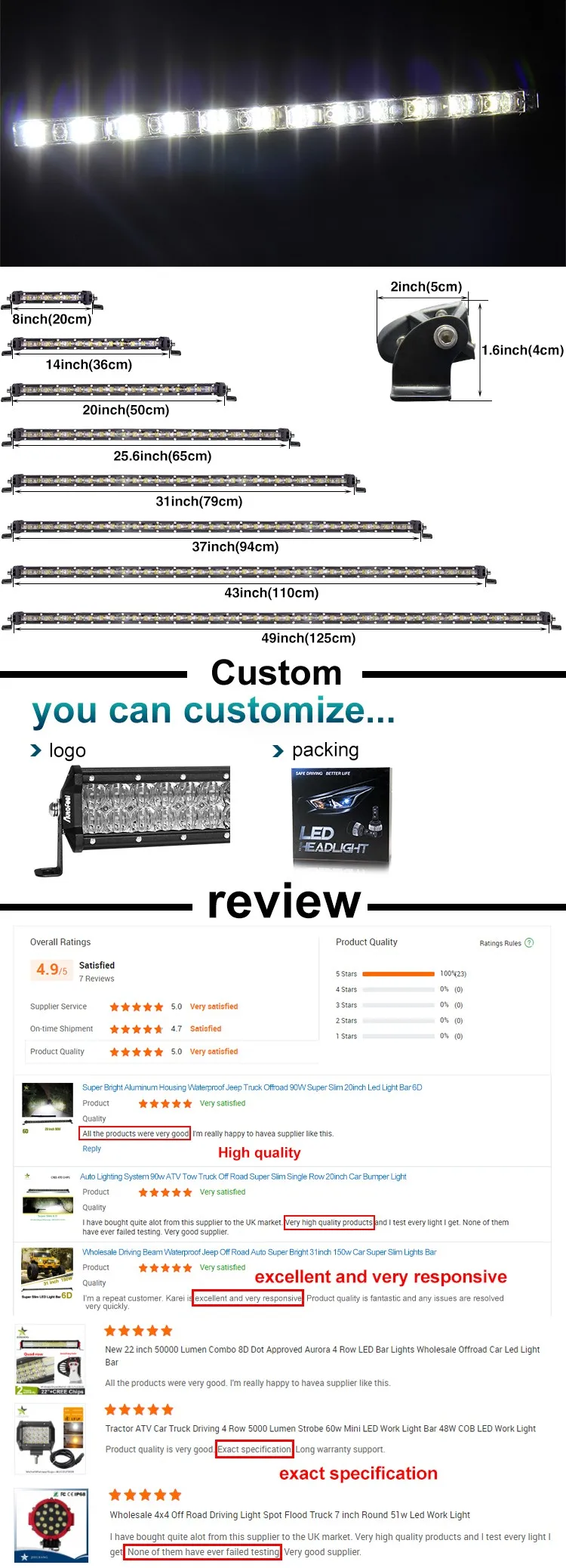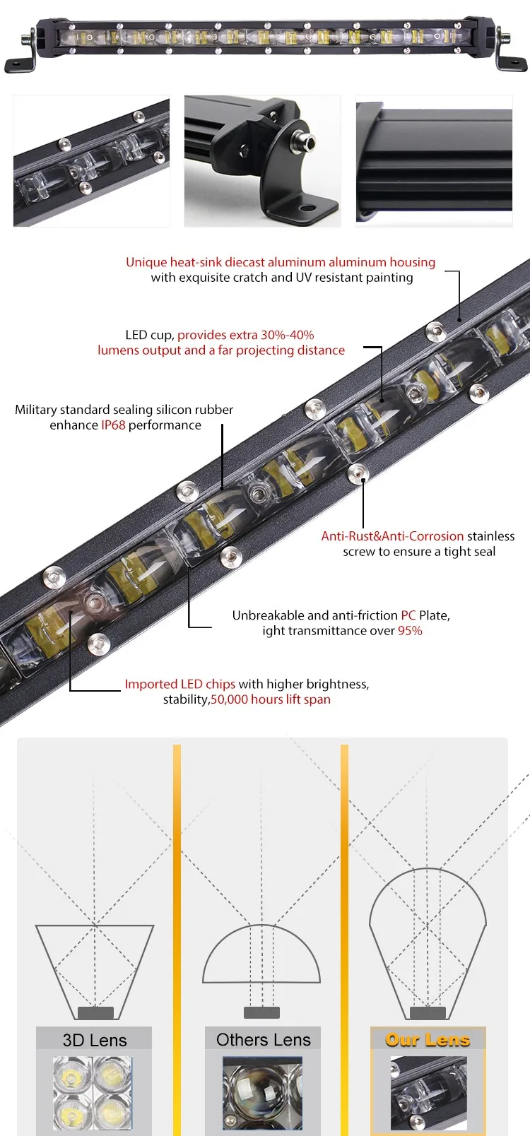 | AFTER SERVICE: | IF YOU RECEIVED BAD LIGHT,CONTACT UD WE WILL RESEND YOU GOOD LIGHT; | Type: | Super slim LED Light Bar; |
