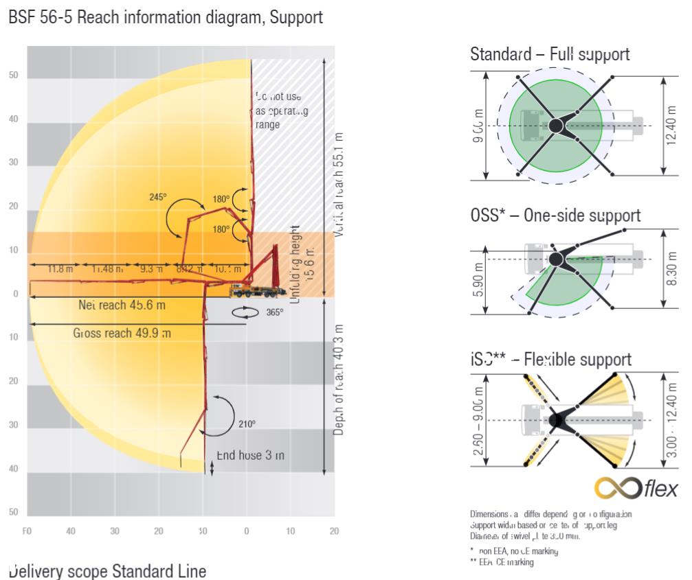 3 | vertical range | 55.1 meters | 11 | Support width standard (front and rear) | 9.3 / 12.1 m |