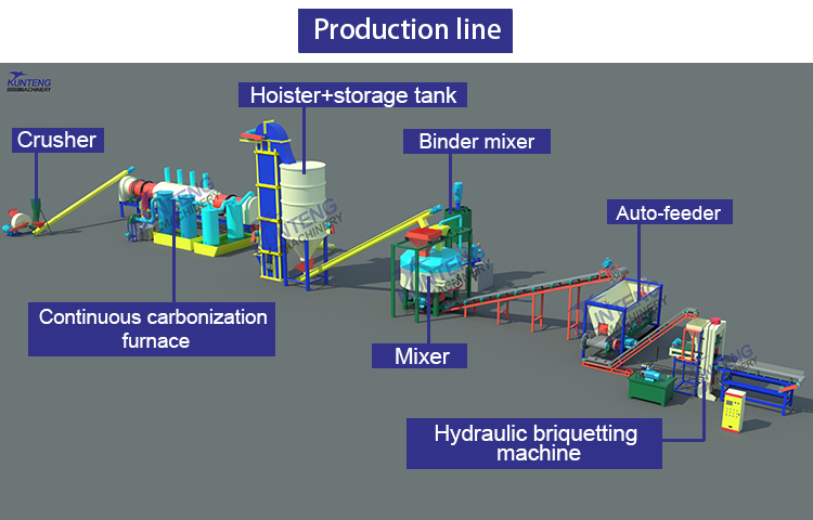 The production lines of anthracite briquetting machine, charcoal briquetting machine and barbecue wood sawdust briquetting machine are fully automated.